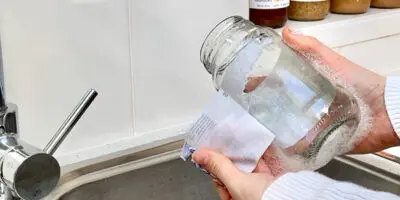 The easiest way to remove the labels from our jars is to let them soak in hot soapy water for a few hours. The soap will make the labels a lot less sticky and easier to peel off. If the label is still difficult to remove, grab a scourer and scrub the remnants under warm running water. Once removed, dry the jar off and reuse it as: