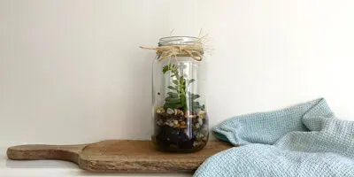 Terrariums are the perfect way to spruce up your home with a little greenery. They donβt take up a lot of space, donβt need a lot of care and are beautiful to look at! You can build a terrarium in just a few minutes, and get the kids involved as well! All you need is a glass jar, a hand full of pebbles, potting soil and a small plant. First, cover the bottom of the jar with pebbles and stones for drainage. Then, layer an inch or two with potting soil and pot your plant. You can always top your terrarium with more pebbles or decorative stones to add some more flare.
