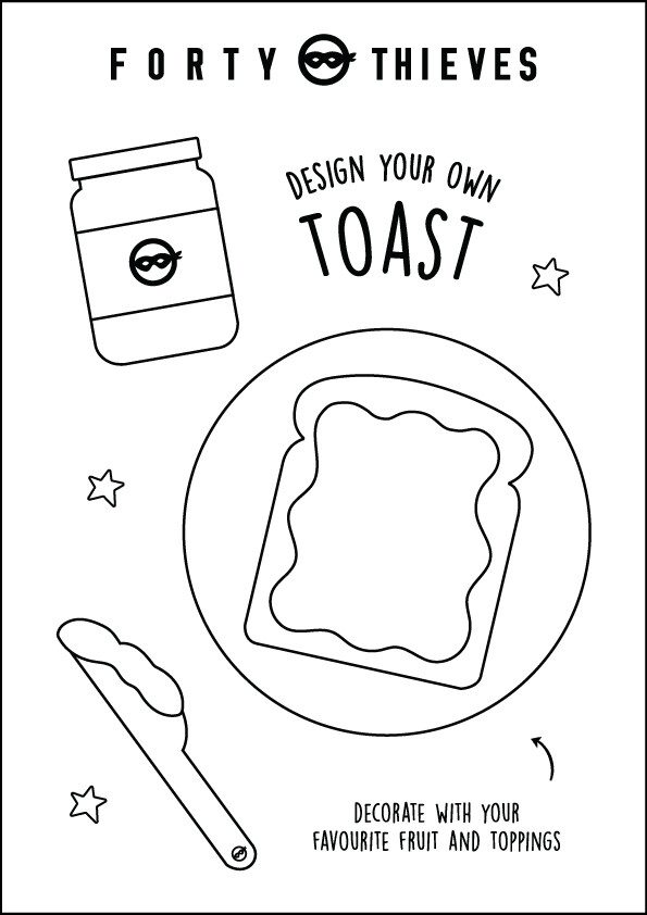 Draw your favourite Forty Thieves nut butter and toppings on this toast.