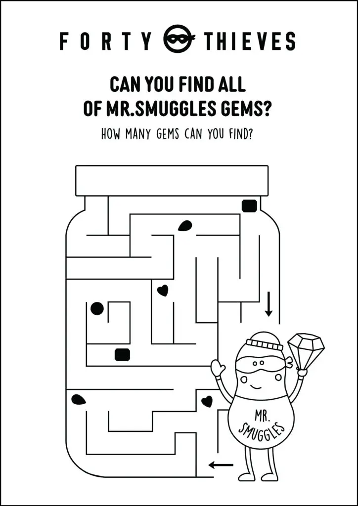 Mr. Smuggles and his band of thieves have smuggled in the goodness of nuts and seeds into this delicious jar of nut butter! How many gems can you find?