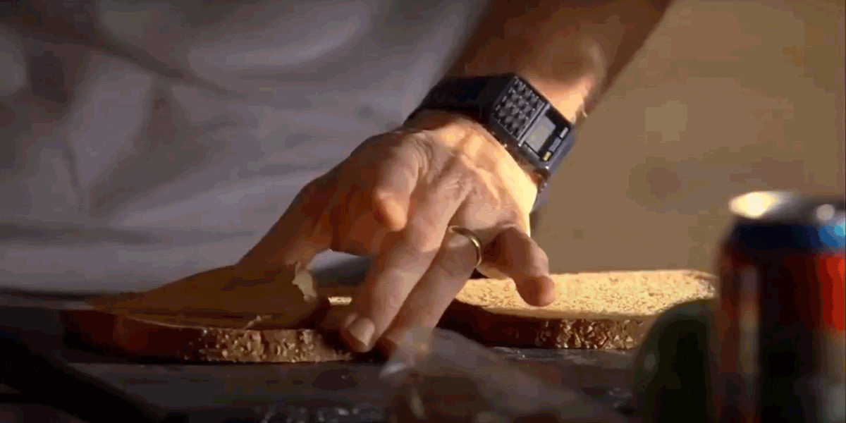 Over 3 seasons, we’ve watched Walter transform from amicable school teacher into alter ego; Heisenberg, the power-hungry drug lord. Scenes like this offer a reminder of just how calculated and pedantic this character really is- an even spread of both Peanut Butter and jam with crusts cleanly cut off. Every task he carries out including something as mundane as making lunch is done with the utmost care.