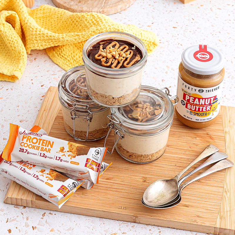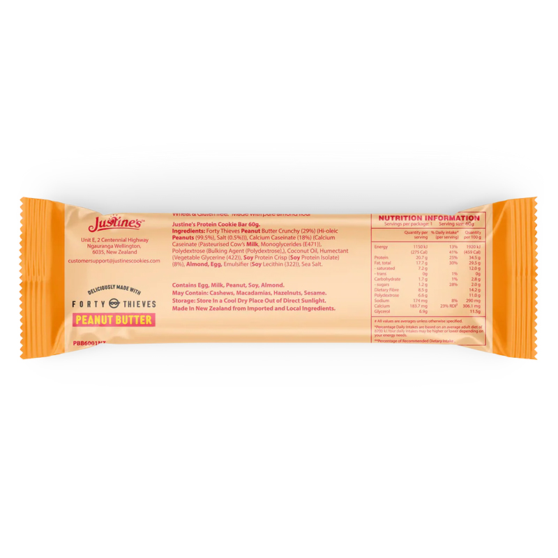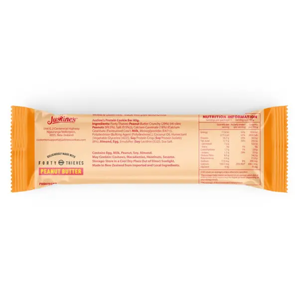 Forty Thieves Peanut Butter Crunchy (29%) (Hi-oleic Peanuts (99.5%), Salt (0.5%))), Calcium Caseinate (18%) (Calcium Caseinate (Pasteurised Cow’s Milk, Monoglycerides (E471)), Polydextrose (Bulking Agent (Polydextrose),), Coconut Oil, Humectant (Vegetable Glycerine (422)), Soy Protein Crisp (Soy Protein Isolate) (8%), Almond, Egg, Emulsifier (Soy Lecithin (322)), Sea Salt..