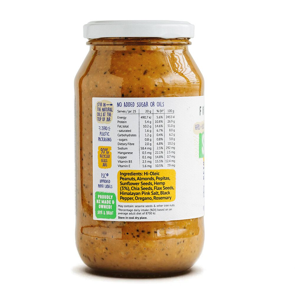 Roasted nuts, crunchy seeds, aromatic herbs and a kick of black pepper. If health is the greatest wealth then this jar is bursting with riches!
